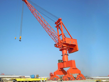 The portal crane is divided into two types: single boom and four link according to the boom structure. Single boom portal crane has simple structure, large lifting capacity and light deadweight. The four link portal crane adopts a combined boom system to realize the horizontal movement of goods during luffing, which is characterized by small horizontal drop, stable luffing and low power consumption. Both types of gantry cranes can meet the requirements of loading and unloading of groceries, bulk cargo and containers, and have the characteristics of wide application scope, high operation efficiency and stable operation of the whole machine.